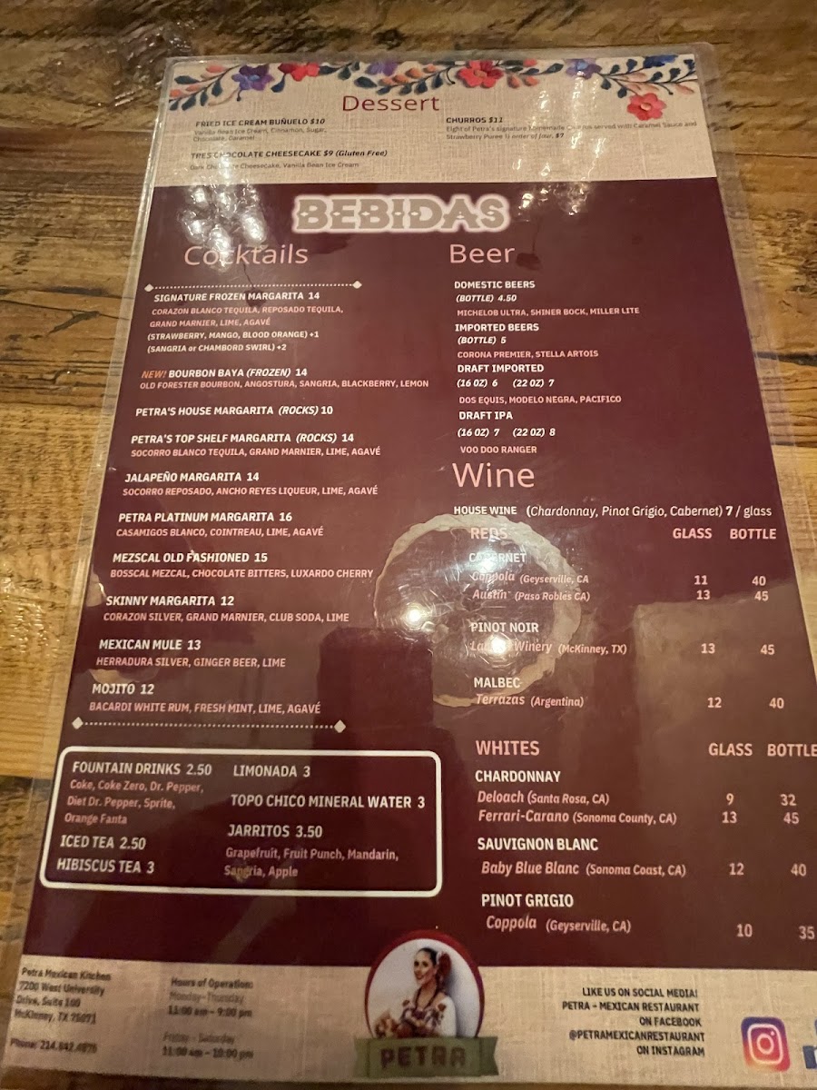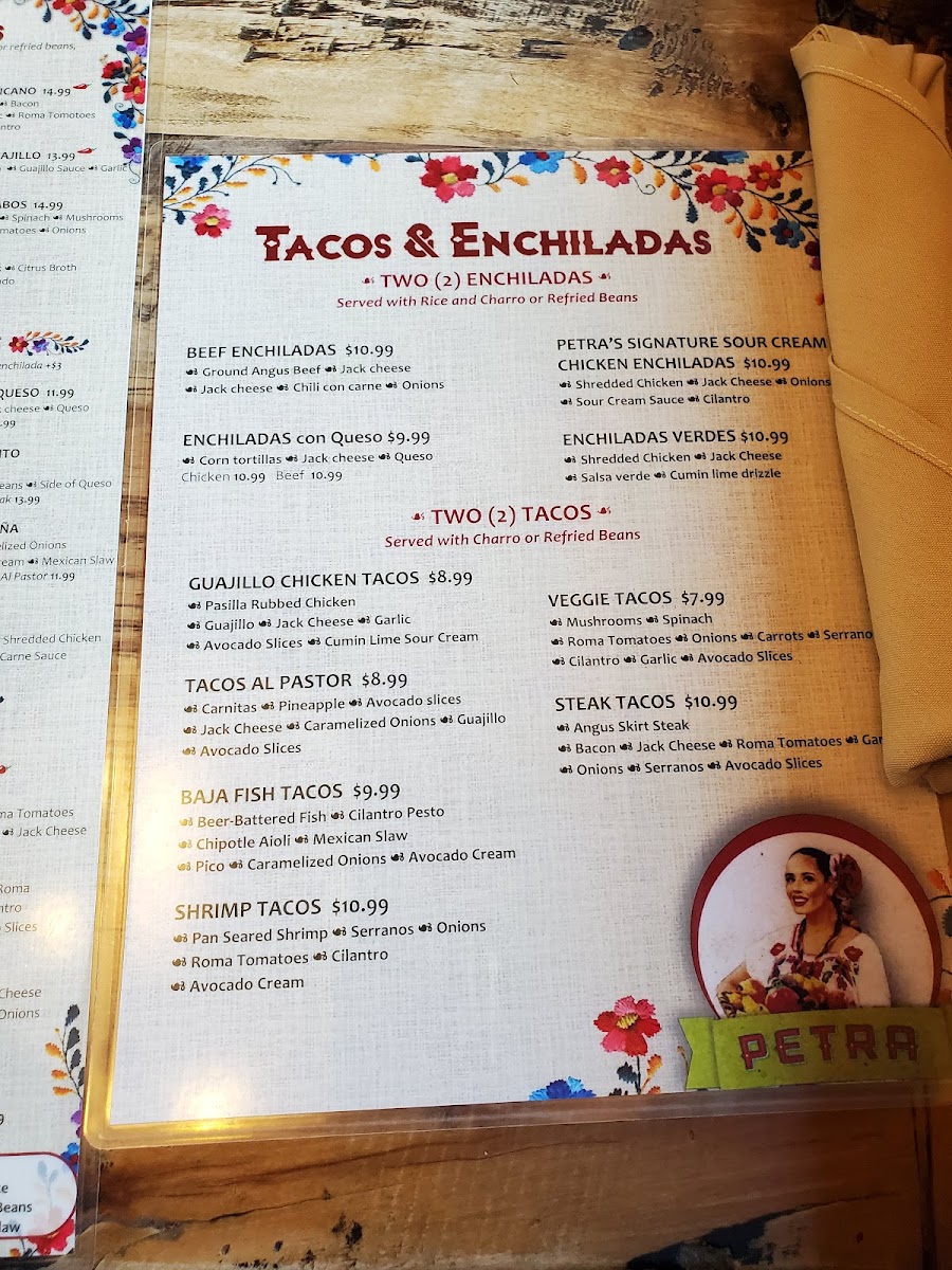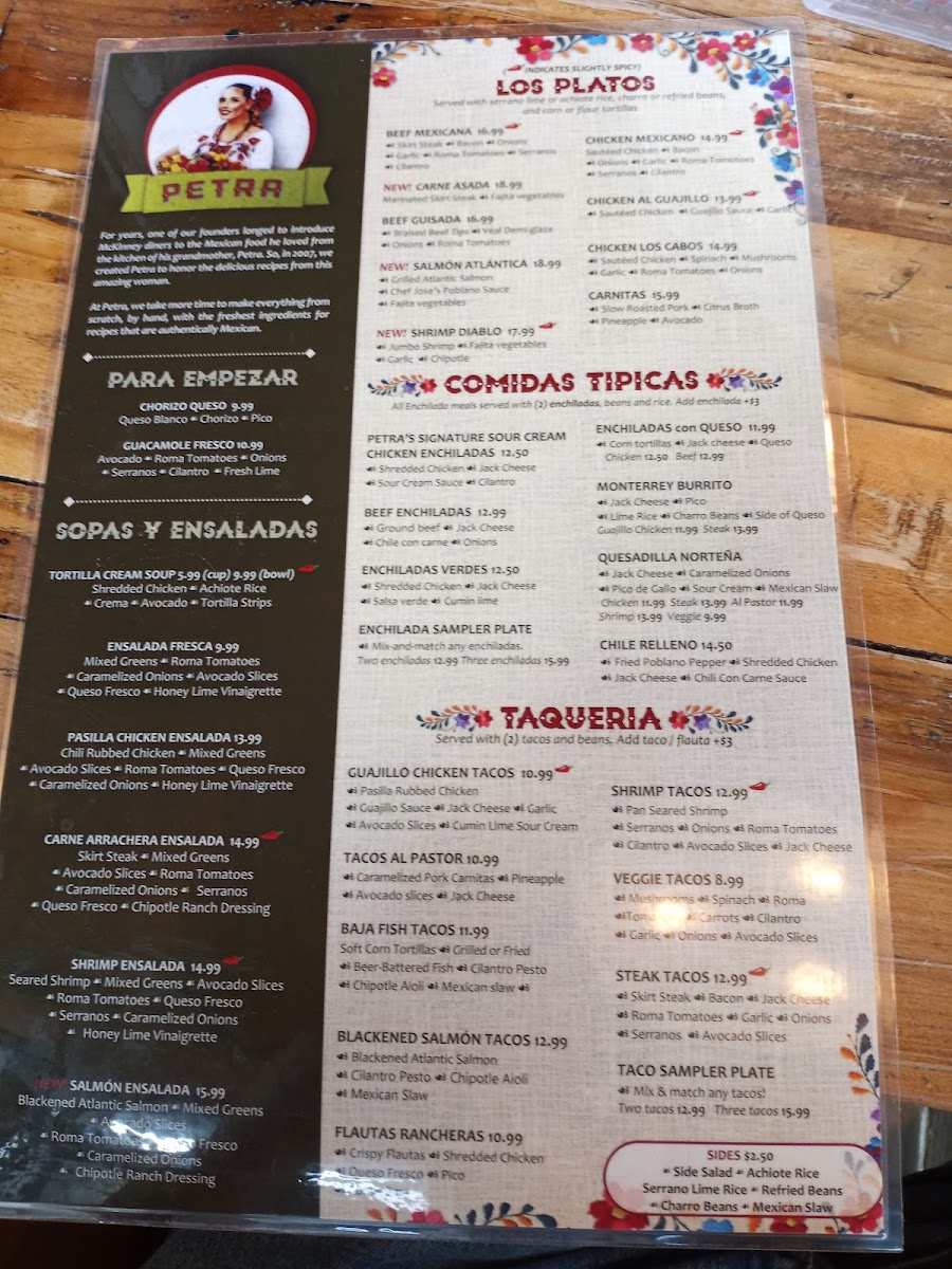 Welcome to Petra, where the vibrant flavors of Mexican cuisine come alive in McKinney, Texas. Located at 7200 W University Dr, this inviting establishment offers a diverse menu that caters to every palate. From succulent Pollo Asado drizzled with fresh guacamole to the rich Carne Asada served with grilled vegetables, each entrée is crafted with passion and precision.
